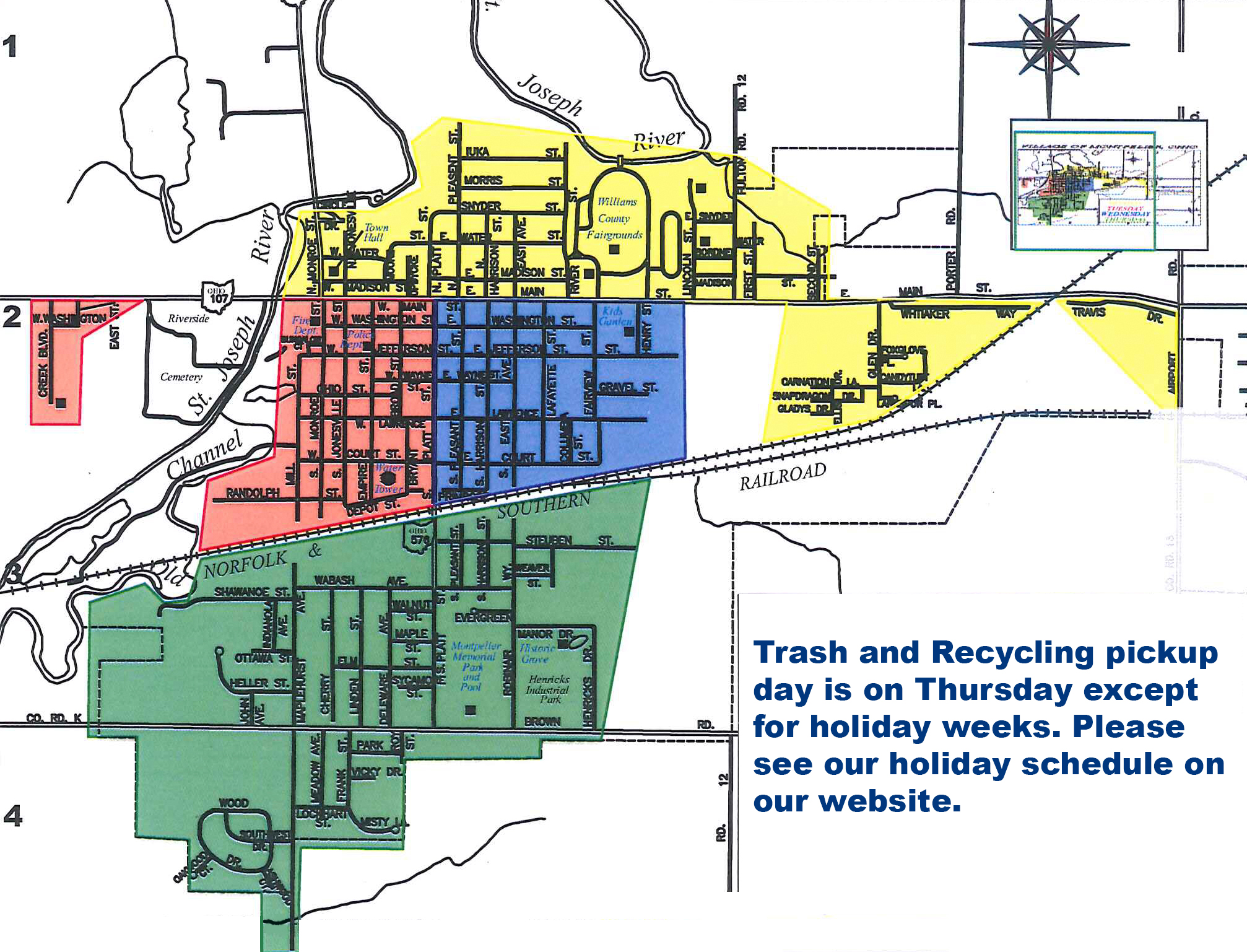 Trash pickup day is Thursday except for holiday weeks.
